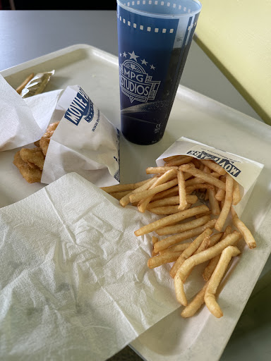 Die Pommes waren kalt und pappig. Das schlimmste war aber der eine Mitarbeiter. Stellt euch einen Typ vor, wie die Hinterwäldler bei Wrong Turn. Zum Öffnen der Sonnenschirme musste er anscheinend auf die Tische klettern. Und JA! das musste sein, WÄHREND Leute an selbigen Tisch am Essen waren. Anschließend hatte er sehr wenig Verständnis für kritische Worte eines Gastes. Der kann froh sein, dass an meinem Tisch kein Sonnenschirm war. Ich hätte wahrscheinlich sehr beherzt mit seinem hässlichen Gesicht in meine ekligen Pommes gedrückt. Der Movie Park sollte echt mal darauf achten Personal einzustellen, das ein Mindestmaß an Tischmanieren besitzt. Er muss ja nicht Messer und Gabel essen können, aber während dem Essen auf den Tisch springen? Sogar meine Katzen wissen, dass man...