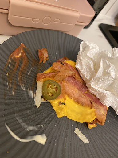 Beim verlassen mussten wir sowie einige andere Kunden unser Tablett auf dem nächsten Tisch abstellen welches wieder die neuen Gäste begrüßen konnte da alle Container voll waren.