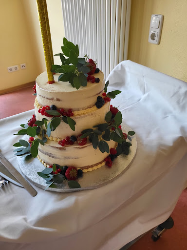 Wir haben unsere Hochzeitstorte dort bestellt und dazu paar Bleche Kuchen. Vorab gab es ein Treffen, wo besprochen wurde, wie unsere Vorstellungen sind. Wir wurden gut beraten von der Bäckerin und auf persönliche Wünsche wurde eingegangen, wie z.B. veganer Kuchen und Eukalyptusblätter auf der Torte.