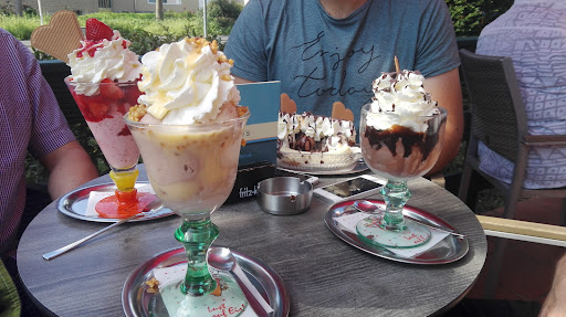 Read moreIn Brühl gibt es zwar diverse Eisdielen in der City, die auch nicht wirklich schlecht sind, aber etwas Besonderes an Eissorten konnte ich bis jetzt noch nicht ausmachen. Hier ist wohl mehr die Lage ausschlaggebend. Als mir von Google Maps dann das Eiscafe Segalla vorgeschlagen wurde, die ein Kölsch-Eis im Angebot haben sollte, bin ich neugierig geworden. Letzten Sonntag sind wir dann hin und ein Blick auf die Eiskarte war erst einmal ernüchternd: nur die "Klassiker", ok. Als die freundliche Bedienung uns dann aber auf die Tageseissorten aufmerksam machte, sind wir rein an die Theke. Und siehe da: da sah die Auswahl schon ganz anders aus: U.a. Erdbeer-Basilikum, Bretonisches Erdnuss-Karamell, Melone. Alles zu empfehlen. Schön, eine Eisdiele mit Ideen in Brühl gefunden zu haben. Ach ja: das Kölsch-Eis gab es an diesem Tag nicht und ich vergaß, danach zu fragen. Spricht wohl für die von uns ausgewählten...