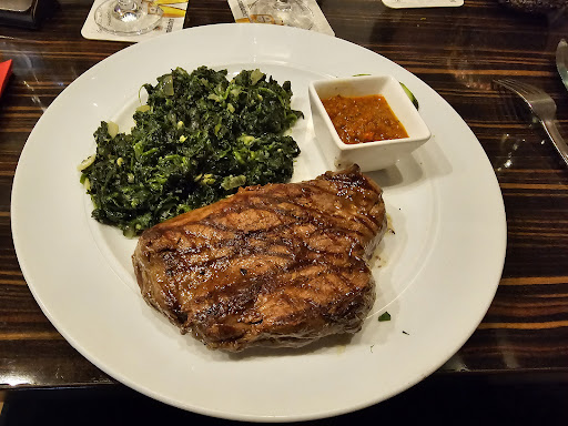 Read moreOrdered a ribeye steak hear and some sweet potato fries ,I usually don’t like fries because people make them not crunchy.Crunchy fries are best I really liked the sweet potato fries also the ribeye steak medium was on point perfectly cooked, also for the price that ribeye steak amazing.Melisa was our waiter very nice and kind, she knew about the stuff my family also really liked the food everything was on point.Ordered mushrooms as starter as well they were good straight out of the cooker.Recommend coming here you cannot miss it...