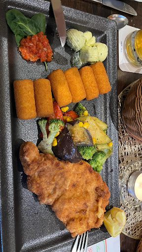 Zu Essen hatten wir Schnitzel mit diversen Saucen, verschiedene Pizzen, große und kleine Salatteller und auch Vorspeisen wie die Aioli-Creme. Die Schnitzel sind preislich etwas gehoben, aber qualitativ sehr gut und auch echt lecker. Grillgemüse etc. auch auf den Punkt. Die Pizzen waren sehr reichhaltig belegt und ebenfalls echt lecker. Sogar die „einfache“ Margherita-Pizza war sehr lecker und besser als bei anderen Pizzerien. Und der Teig war auch angenehm knusprig.