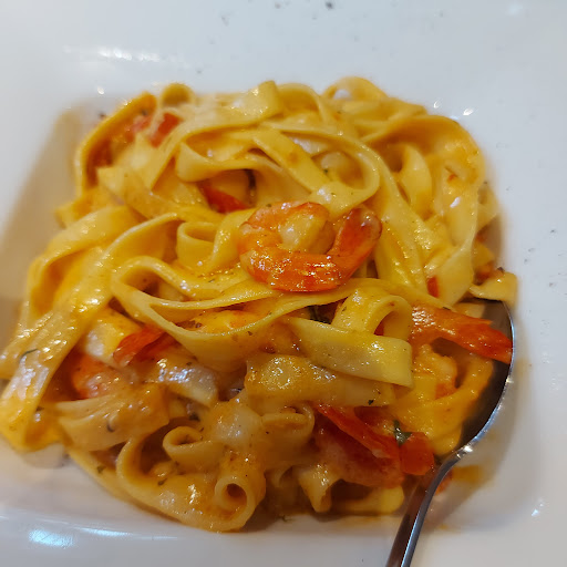 The food was amazing, I ordered a lasagna and my wife mushroom tagliatelle both portions were filling and we even took some home. Even though this was a pizzeria, the pasta dishes were great.