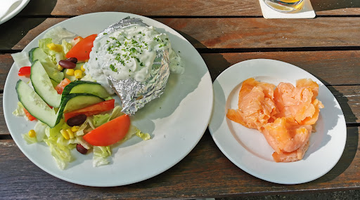 Das Restaurant hat klare 5 Sterne verdient, das Essen ist einfach (echt gute Schnitzel, Klopse, Hausmannskost und so), aber in allen von uns an den 3 Tagen probierten Varianten gleichbleibend gut mit vergleichsweise riesigen Portionen. Oft reichte schon der Kinderteller für den normalen Hunger - und das alles zu Preisen wir vor 10 Jahren. Keine Ahnung, wie die das hinkriegen. Ansprechende Inneneinrichtung und sehr schöner Biergarten unter Bäumen mit bisschen Blick auf die Havel in 50m Entfernung. Anscheinend hat sich das auch in der Gegend schon herumgesprochen, Reservierung ist vielleicht angebracht, ansonsten eben bisschen warten.