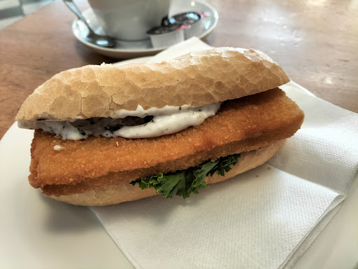 Also gäbe es hier eine andere Möglichkeit an ein halbwegs gutes (veganes) Backfischbrötchen zu kommen würde ich definitiv woanders hingehen damit ich mir keine bösen Blicke und doofen Sprüche...