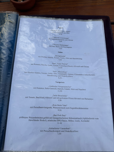 Read moreAbsolute Entäuschung. Eigentlich nichts los, aber die Getränke haben schon eine Ewigkeit gedauert (also sowohl die Aufnahme der Getränke, als auch das Bringen) dann kamen die Speisen, die wir lieber nicht geordert hätten. Der absolute Flopp, der absolute Schrott, Nichtskönnen in Perfektion. Eine Kürbis-Ingwer-Suppe für 7,90 Euro, die wie Mehlschwitze oder Kloswasser schmeckt, darauf mindestens 5 Esslöffel von einem minderwertigen Kürbisöl, dass die Suppe vielleicht noch etwas Kürbisgeschmack bekommt. Angeblich hat der Koch Süsskartoffeln und Kürbis angeschwitzt und dann mit Brühe abgelöscht. Danke für den Witz in diesen traurigen Zeiten. Mein veganes Curry von Süsskartoffeln und Mango an Basmati-Reis war dann die absolute Frechheit. Kein Mango, keine Stücken von Süsskartoffeln und kein Curry-Geschmack. Stattdessen Verkochter, wässriger Reis mit einer säuerlichen Tomatensoße in der Zwiebeln, grüne Bohnen und andere Gemüsestückchen schwimmen. Irgendwann ist dann die Chefin einfach weg, nachdem wir der Kellnerin sagen, dass uns das Essen nicht schmeckt. Der Koch kommt dann zum Kassieren an den Tisch und sagt, dass er demnächst mehr würzen muss. Halt Stop!!! Nein!!!! Er muss nicht mehr würzen, er muss einfach kochen lernen! Die Sachen, die ich auf einer Speisekarte anbiete, sollte ich auch drauf haben. Und ein Curry sollte nach Curry schmecken. Wenn ich vegane bzw. indische oder asiatische Speisen anbiete, sollte ich mich vorher diesbezüglich ausbilden oder Schulen lassen. Ich selbst koche hin und wieder in einem Seminar-Haus mit Schwerpunkt Yoga, Indien sowie ayurvedischer Küche und beschäftige mich seit Jahrzehnten mit Gewürzen bzw. Curry-Gewürzmischungen sowie vegetarischen und veganen Gerichten. Nicht mal der unerfahrenste und unbegabteste meiner Kochschüler hat jemals so einen Mist zusammen gekocht. Lieblose und eigentlich ungenießbare Küche. Dem stark nach Zigarettenrauch riechenden Koch, der an unserem Tisch war, sei auch gesagt/empfohlen, dass starkes Rauchen auch die Geschmacksnerven beeinflusst. Ich habe also nochmal einen Schluck von meinem frisch aufgebrühten Ingwerwasser gemacht, dass aus lauwarmen Wasser, gefühlt 16 Zitronenstücken und drei Miniwürfeln nicht mehr so frischem und schon angetrocknetem Ingwer bestand (so lauwarm war es, weil viel zu viel kalte Zitronenstücken in dem viel zu kleinen Glas waren) und dann bezahlt. Die Wirtin schickt den Koch zum kassieren an den Tisch, weil sie wahrscheinlich weiß, dass die Baustelle hier zu groß und sie wegen der vielen Defizite hoffnungslos verloren ist und keine Lust mehr hat, sich die Kritik eines Gastes anzuhören. Kommt in die Top-Ten der zehn schlechtesten und überbezahlten Essen in meinem Leben. Nie wieder!!!! Und den einen Stern gibt es wirklich nur für die Location und das Ambiente. Alles andere war...