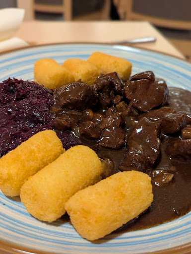Alles in allem ist das hier kein Gourmetrestaurant. Es gibt Schnitzel, Burger, Pizza, Rippchen, Pommes, Kroketten, so was, aber auch Spätzle, Fisch und andere Dinge, mitunter tagesabhängig. Aber das in toller Qualität, lecker, in guter Menge und zu einem angemessenen Preis. Das Personal ist ganz liebenswert (ein Pärchen mittleren Alters inklusive Sohn, wenn ich das richtig erkannt habe), und dem Essen nach zu urteilen, scheinen sie ihren Job auch gerne zu machen. Das Ambiente ist relativ einfach gehalten, aber nicht billig oder so, und auch nicht kritisch gemeint, allemal sehr gemütlich.