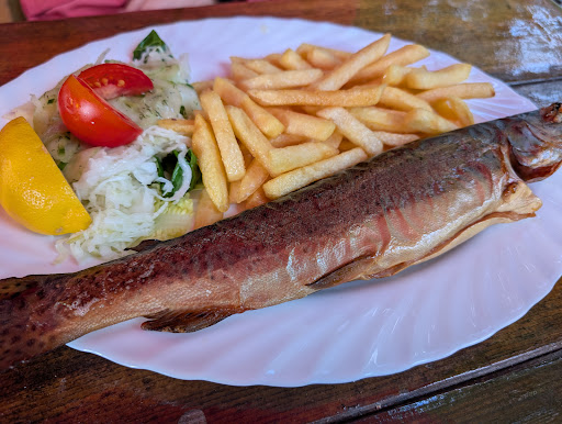 Zu essen gab es 3x frisches Hähnchen mit Pommes, 1x Forelle ( glaube ich ) und 2x Soljanka. Alle Speisen waren zu dem angebotenen Preis einfach hervorragend ! Besonders das Hähnchen war für den Preis ( 6.90 € mit Pommes ) wirklich groß und entsprechend sehr lecker.