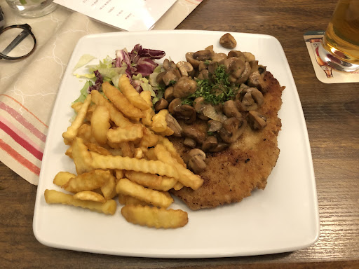 Mit dem Essen hatten wir wohl einfach nur Pech , anderes sah besser aus. Champignon Schnitzel war einfach nur trocken weil keinerlei Sosse dazu war , die Pommes überwürzt und drei Salatblätter waren nur vom Geschmack her mit Essig benetzt. Wir wurden die ganze Zeit nicht beachtet und evtl nach weiteren Getränken gefragt.