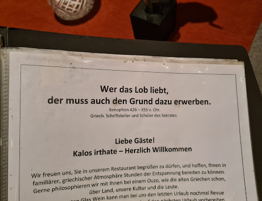 Read moreIch kann die vielen guten Bewertungen nur insoweit nachvollziehen, dass dieses Restaurant keine wirkliche Konkurrenz hat und den meisten Leuten mehr oder weniger egal ist, wie die jeweilige Küche wirklich schmecken MÜSSTE. Jedem Griechen, der etwas von Kochen versteht, würde es in diesem Restaurant vermutlich die Latschen ausziehen :( Ich kenne die griechische Küche familienbedingt und fand das Essen nicht gut. Die Küche ist nicht fett und es ist auch nicht alles pampig überbacken und unter Soße erstickt, den Eindruck kann man dort aber gewinnen. Der Salat (die Hoffnung des Abends) war interessanterweise eine Variation eines toskanischen Brotsalates, aber mit betonharten Tomaten und gefühlten hunderten Kapern. Bitte bestellt ihn nicht! Der Service ist aber gut und nett, die Location soweit okay. Es war sehr laut, das muss man wegstecken können. Fazit für mich: Ich fahre lieber in die nächstgrößere Stadt, auch wenn es nicht so bequem ist. Parkplatz ist...