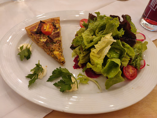 Bei solchen Preisen müsste doch die Qualität stimmen! Stattdessen durch die Bank mangelhaft. In der Fischsuppe nur 4 panierte, weiße Fischklumpen. Sonst nur Gemüse, hier schwimmt kein anderer Fisch! Das vermeintlich frisch gebratene Knoblauchbrot kam offensichtlich fertig aus dem Kühlschrank, so kühl wie es war. Allgemein war die Suppe, die Quiche, der Krustenbraten und der Zwiebelrostbraten schlecht abgeschmeckt, von der Anrichtung ganz zu schweigen. Hier wird an allen Ecken gespart! Die Qualität leidet! Die Zwiebeln des Zwiebelrostbraten waren pappig-süße Fertigware. Der Krustenbraten ist ein günstiges, fettloses Stück vom Schwein. Am Ende noch ein winziges Stück Kruste draufgelegt und der Braten war komplett. Umbestellungen kosten übrigens 2€ extra. Für 17€ war die Pilz-Quiche nur so groß wie ein halbes Pizzastück (!), dazu ein einfacher Salat. Darauf angesprochen hat unser Kellner in der Küche nachgefragt. Ein Kilo Pilze würde 20€ kosten, deshalb könne man keine größeren Stücke servieren. Die kleine Quiche mag allerhöchstens 150 Gramm gewogen haben. Großzügig sind davon 50 Gramm Pilze. Das sind runtergerechnet ein Euro. Liebe Linde, fangt's doch nicht das Feilschen an! Beim Abtragen hat der Kellner unsere Kritik freundlich aufgenommen und in der Küche nachgefragt. Kein Wort der Köche, keine Entschuldigung!