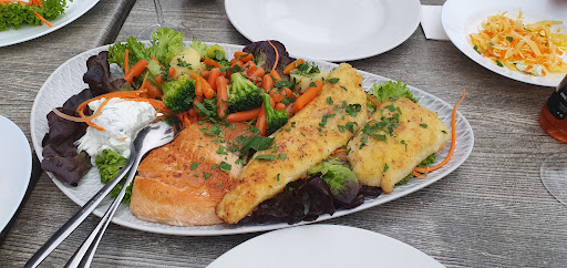 Read moreAuf einer Panoramaterrasse zu sitzen, den wunderschönen Chiemsee vor Augen, dazu köstlich bewirtet zu werden, würde sich so mancher Gast wünschen. In der "Taverna Hofanger" in Gstadt muss dies kein Wunschtraum bleiben, denn genau dies kann man dort, zu zweit, alleine oder in einer Gruppe erleben. Das griechische Restaurant lädt zum Verweilen ein, der Service ist sehr freundlich, und die Chefin bedient auch selbst. Die Atmosphäre ist sehr familiär. Die Speisen sind überaus lecker, vor allem der cremige Tzatziki, mit Gurken liebevoll angerichtet, ist ein wahres Fest für den Gaumen. Bei unserem Besuch am Abend wählten wir die reichhaltige Fischplatte für zwei Personen und waren begeistert. Die einzelnen Fischspezialitäten waren wunderbar auf den Punkt gebraten, das knackige Gemüse und die Kartoffeln, nebst einer kleinen Portion Tzaziki, rundeten den Geschmack auf besonders angenehme Weise ab. Der einzige Wehmutstropfen ist leider die Anwesenheit der vielen Stechmücken, doch die Chefin reichte uns Apfelessig zum Einreiben, was tatsächlich dazu beitrug, die Mücken von uns fern zu halten, zumindest eine gewisse Zeit lang. Alles in allem waren wir sehr angetan von dieser Taverna am See. Auch die Preise sind durchaus im Rahmen. Die Aussicht von der Terrasse ist herrlich. Leider war an diesem Abend der Himmel etwas diesig und wolkenverhangen, sodass wir nur einen kleinen Eindruck von der tatsächlichen Schönheit des Ausblicks bekommen konnten. Bei Sonne und blauem Himmel muss es ein Traum sein, dort zu speisen. In jedem Falle werde ich hier wieder auf kulinarische Entdeckungsreise gehen,und ich kann dieses Lokal nur...