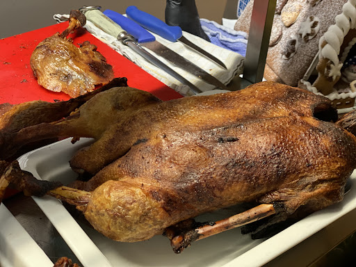 Das Essen war schlecht! Die Weihnachtsganz war total trocken und kam über eine Note 4 nicht hinaus. Die Garnelen waren alt und haben muffelig geschmeckt. Später wurden die Garnelen wieder eingesammelt, wir waren wohl nicht die einzigen, die sich beschwert haben. Der Nachtisch bestand aus 3 Sorten Instant-Pulver-Desserts. Das Wild war zum Teil zerkocht oder trocken. Beilagen wie Salate, etc. waren ok aber auch nichts Besonderes. Offenbar waren die Mitarbeiter in Restaurant verwirrt und eine Hand wußte nicht, was die andere macht. Wir haben im Voraus bezahlt, indem wir den Betrag überwiesen haben. Nun wurden wir im Verlauf des Abends 3 (!!!!) mal von Mitarbeitern angesprochen, ob wir denn auch schon bezahlt hätten. Wir fühlten uns wie Zechpreller. Das Ansprechen war derart penetrant, dass man von den Nachbartischen schon auf uns blickte und wir gemustert wurden.