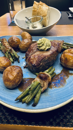 Das erste Mal, dass ich nur zwei Sterne vergebe. Einen für die wirklich schöne Aussicht auf das Rollfeld des Flughafens und einen weiteren Stern für die Entschuldigung des Personals für den Abend. Waren dort auf Empfehlung eines Freundes (soviel zu der Qualität der Bewertungen). Ein Weihnachtsgeschenk für den Schwiegervater, 94 Jahre. 18h reserviert, alles gut, schöner Tisch mit Blick aufs Rollfeld. Zuerst mal reingefallen auf den Aperitif, teurer als die späteren Getränke zusammen. Gegen 19 h bestellt, ca eine Stunde später kam das Essen. Zweimal Steak, Hasenrücken, Wiener Schnitzel und Fisch. Der Hasenrücken war blutig, mag ja sein?! Die Steaks, medium plus bestellt, kam einmal medium rare. Die Pommes und der Spinat dazu waren dermaßen versalzen, dass es völlig ungenießbar war, zurück. Das Wiener Schnitzel, naja, warum schickt man norddeutsche Köche nicht mal in den Süden, damit sie sehen, wie so etwas aussehen und schmecken muss? Sah eher aus, wie ein Schnitzel aus der Pfanne, keine losgelöste Panade. Später kamen dann auch noch die Pommes und der Spinat, ohne Fleisch nicht wirklich mehr nötig. Um halb neun dann den Nachtisch bestellt, um halb zehn die Bedienung nochmal daran erinnert, um zehn um die Rechnung gebeten, ohne Nachtisch bekommen zu haben. Es tat einem dann auch leid, dass man einen Nachtisch wollte, weil die vier Köche in der offenen Küche doch sehr daran interessiert waren, nicht am Nachtisch, sondern an der Kellnerin! Auf der Rechnung war dann auch alles, was wir bestellt hatten, einschließlich dem Nachtisch und geschätzt auch den Getränken des Nebentisches? Nach einer Prüfung der Rechnung (unbedingt zu empfehlen!!!), reduzierte sich diese um fast 60€ und es gab als Entschuldigung ein Absacker. Man muss dazu sagen, dass das Restaurant nicht wirklich gut besucht war, Mitarbeiter und Gäste ca eins zu eins. Die Preise sind recht hoch mit rund 30 € pro Gericht, das ist nicht angemessen für die Qualität. Das Lokal ist aber recht gemütlich eingerichtet. Wohl aber mehr für Hotelgäste und Durchreisende zu empfehlen, die mangels Alternativen dort essen wollen und...