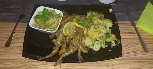 Fisch: verscheidene Sorten wurden zusammen auf einer Platte serviert, und das schon vor unserer Ankunft. Die Marinaden/Soße vermischen sich - einfach nur ekelig - der Fisch war vom Geschmack her widerlich. Beilagen zum Fisch: Bratkartoffeln - halb gefüllte Schüsseln wurde nur auf Nachfrage nachgefüllt Nachschub in dicken Scheiben , die mal eben schnell durch die Pfanne gezogen wurden Gurkensalat: es gab keinen Nachschub - Kommentar: das wäre eh nur ein Topping des Hauses es gebe keinen Salat mehr - der Salat wäre alle - so unter dem Motto, seid froh, dass ihr überhaupt Salat bekommen habt.