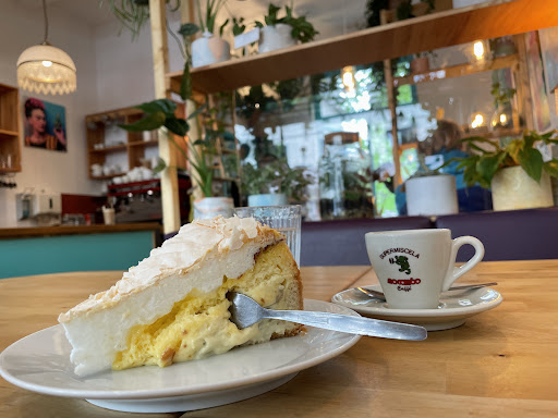 Read moreTl;dr at the end: I happened upon the shop by chance, actually just wanting to pick up a "Biogemüsekiste" (Box with organic vegetables from a near farm) that the owners of Café Frieda kindly keep for the farm customers in their garden. I've walked past the shop many times and noticed the beautiful interior from the outside. The café not only looks chic, it also has a well-stocked cake display. The cakes looked so fantastic that I took two slices home with me (and two of my favorites were smiling at me: "Karotte-Walnuss mit Frischkäse" (carrot walnut with cream cheese topping) and "Stachelbeer-Baiser" (gooseberry meringue). And I love gooseberry meringue, so I was very excited. And then, at home, the surprise: an absolute dream. The fruit content was great, the meringue perfect, and I don't know what the bakers put in the batter, but something made the difference; I haven't figured it out yet. Lemon zest, vanilla... without exaggeration, the best gooseberry meringue I've ever eaten. The carrot walnut is in no way inferior to it, also a masterpiece of a cake. Now I'll have to try all the other cakes. There are vegan options too.