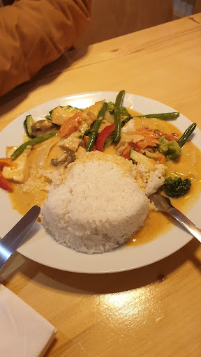 Read moreDie gebratenen Nudeln mit Hähnchenfleisch, die ich hier gegessen habe, schmeckten richtig gut und es war mehr Gemüse enthalten als bei einem üblichen Asia-Imbiss. Dazu konnte ich eine von vier Soßen auswählen, von der Thai-Curry-Soße hätte es ruhig noch etwas mehr sein dürfen. Preislich ging der gut gefüllte Teller mit 6,50 € in Ordnung und die Dame an der Kasse war sehr freundlich und meldete sich jedes Mal fröhlich mit einem "Fertig!!", wenn eine Mahlzeit zubereitet war.