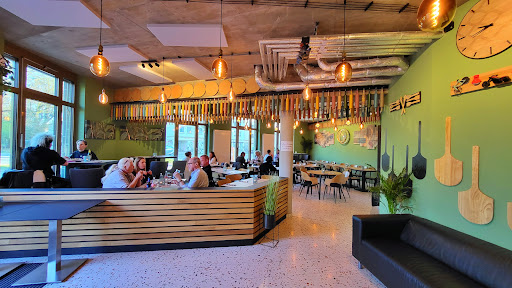 Read moreDas Restaurant ist eher etwas im Industrie Stil eingereicht und erinnert mich mit den hohen Decken eher an eine Uni-Mensa, aber es ist hell und modern und so mag ich's im Grunde. Die Deko macht es zudem ganz gemütlich. Der Service ist sehr nett. Obwohl das Konzept auf Selbstbedienung ausgelegt ist und dies überall angeschlagen ist, wurden wir doch am Tisch bedient. Die veganen Nudeln mit Tomatensauce haben uns nicht überzeugt: Sie schmeckten nach Butter (vielleicht irren wir uns, aber wir sind hochgradig laktoseintolerant und daher sehr vorsichtig) und sie waren generell sehr ölig. Darauf angesprochen haben wir aber direkt kostenlosen Ersatz (auf unseren Wunsch in Form eines Pizzabodens bekommen. Daher ein Bravo für das Reklamationsmanagement. Die Pizza Salmone war dafür sehr lecker und auf den Punkt, hauchdünn gebacken. Der Lachs war in der Menge ordentlich und der Spinat sehr lecker. Die Toiletten, so wie das gesamte Restaurant sind barrierefrei. Pizza jederzeit wieder und richtig lecker, "vegane" Pasta muss man nochmal klären, aber vielleicht sind wir nur zu vorsichtig bei...