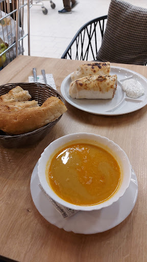 Quick bite after a grocery shopping with my better half. She got hungry so she was extra annoyed by my presence and so I thought that by giving her some food she will feel better....and, she did! We came home safely which means that the food was good, she enjoyed the soup and I had a tasty rollo. Very nice people working there and very clean tables as well. Never go grocery shopping on an...