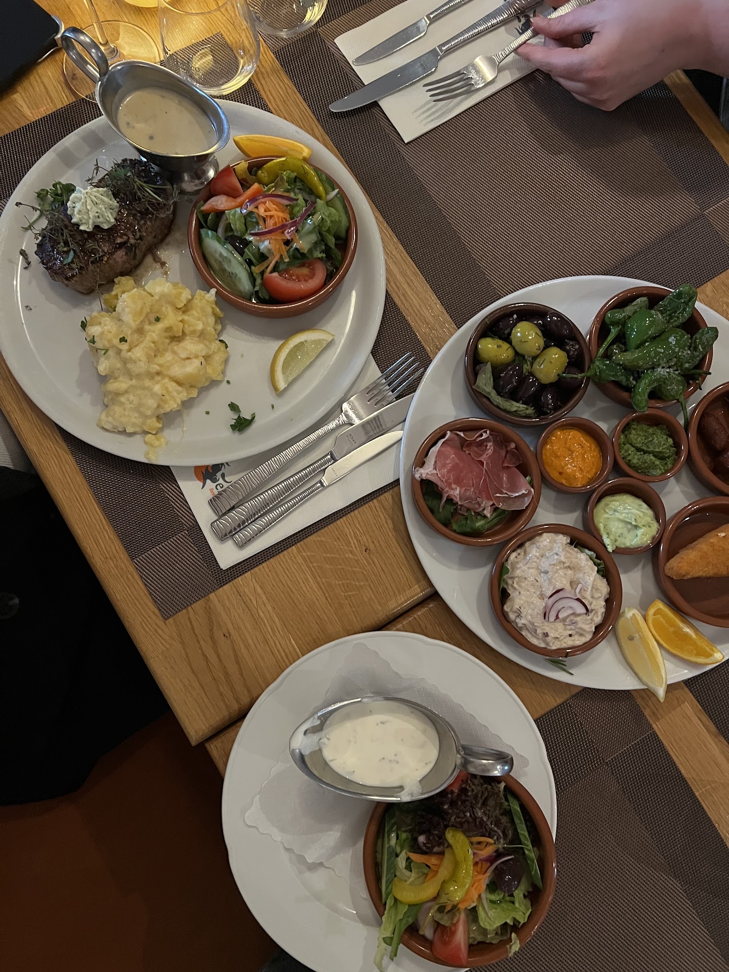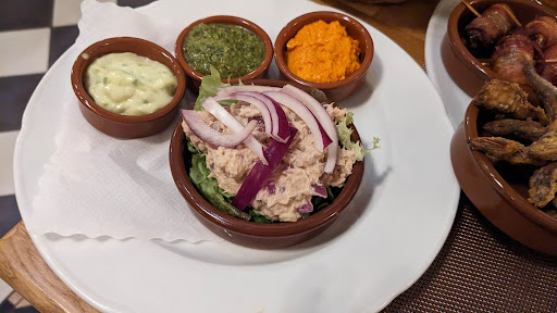 Die Karte ist wirklich umfangreich und weil wir nicht alles lesen wollten, entschieden wir uns für einige der in der Karte zusammen gestellten Tapas Variationen. Es gibt aber auch noch viele andere Gerichte - die wir diesmal nicht näher betrachtet haben! Das Essen sah köstlich aus und genauso schmeckte es auch! Die Zusammenstellungen waren ausgewogen und jeder von uns war glücklich. Zum Nachtisch bestellten wir die Creme Catalana und Flan. Beide sehr lecker, wobei ich bei dem letzteren die Cashew Nüsse vermisst habe. An Getränken hatten wir Aperol Spritz, den offenen trockenen & lieblichen Rotwein, alkoholfreies Weizen, Espresso und Cortado. Alles super und sehr zu empfehlen.