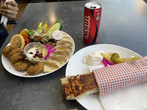 Dieser Laden ist wirklich stolz auf seine Falafel und dies merkten wir daran, dass wir einen weiteren Teller mit paar Falafeln und Humus als GruĂ aus der KĂŒche bekamen. Kurze Zeit spĂ€ter gab es sogar einen frischen Schwarztee dazu. Als spĂ€tere eine weitere Person aus unserem Freundeskreis dazu stoĂ, bekam sie sofort auch einen Tee und wurde darum gebeten, die Falafeln zu probieren.