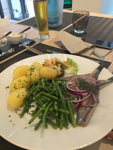 Read moreBewertet als Restaurant der Mittelklasse. Uneingeschränkte Empfehlung! Wir waren zu sechst zum Mittagstisch im FISHERMAN´S SEAFOOD. Den Tisch hatten wir reserviert, was aufgrund unserer Gruppe aus vier Erwachsenen und zwei Kindern ganz ratsam war, denn das Lokal war gut besucht. Das modern-maritime Bistro-Ambiente wirkt hell, freundlich und sauber. Der Empfang durch den Service war sehr freundlich, der Tisch sauber und gedeckt vorbereitet. Die Bestellungen wurden nach einer kurzen Wartezeit aufgenommen, so dass man sich schnell auf das Essen freuen konnte, das auch sehr zügig gebracht wurde. Folgende Gerichte umfasste unsere Bestellung. Kaptänsteller (Kinderteller): Zwei kleine Schnitzel mit Pommes und Salatbeilage. Ein Klassiker unter den Kindertellern. Die Portion war angemessen, der Salat knackig, die Pommes hervorragend und die Schnitzel heiß und knusprig. Kann man nicht besser machen. Fish’n & Chips: Die zarten Fischfilet-Streifen waren in einem knusprigen Backteig gut gewürzt und wurden begleitet durch die obligatorischen Pommes und einer frischen, hausgemachten Remoulade. Mit dem Malzessig von Sarson's aus der Flasche konnte nach eigenem Belieben geträufelt werden. Auch dieses Essen war sehr gut. Helgoländer Schatzkiste: Dieser Teller kam mit Schollenfilet und Kabeljaufilet als auch kleine Cocktailgarnelen. Dazu gab es gebratene Zuckerschoten, Champignons, Frühlingszwiebeln, Paprika, Zucchini, die alle noch knackig waren. Als weitere Beilage waren drei Rösti-Ecken dabei, die kross waren und frisch schmeckten. Zum Stippen gab es Krebsrahmsauce. Hier war ebenfalls alles frisch und lecker. Fisch-Burger de Luxe mediterranen Stils: der Burger bestand aus einem gegrillten Lachsfilet Filet, das auf einem Rosmarin-Oliven-Focaccia-Brot gebettet war. Dazu gab es Salat, Tomaten und Pommes. Als Burgerdressing wurde eine leichte, nicht zu scharfe Wasabi-Sauce gereicht. Der Lachs war gut gegrillt: Sowohl die Würzung als auch der Garpunkt wurden gut getroffen. Der beste Backfisch der Stadt: Der Fisch war zart in richtig heißem und knusprigem Bierteig. Die Fischstücke waren nicht zu groß und nicht zu klein, was beim Backfisch wichtig ist. Die hausgemachte Remoulade schmeckte sehr gut und der selbstgemachte Kartoffelsalat ohne Mayonnaise lecker. Dieses Gericht wurde zweimal bestellt und beiden Personen hat es sehr gut geschmeckt. Es gab noch ein von Vanille-Erdbeersauce und Birnenscheiben umgebenes Schokotörtchen mit warmem, weichem Kern (Fudge) zum Nachtisch, das auch sehr gefiel. Der Kaffee, die Cappuccini und die Espressi waren ebenfalls, wie man es erwarten würde. Die Bedienung war sehr nett und zuvorkommend, ohne aufdringlich zu sein. Das Essen ist mindestens die aufgerufenen Preise wert und gemessen an der Qualität und der Menge, würde ich es fast noch als günstig einstufen. Wir werden FISHERMAN´S SEAFOOD auf jeden Fall noch...