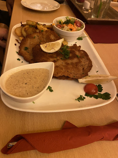 Den Schnitzelabend (Donnerstags) haben wir leider verpasst, aber die bestellten Gerichte waren allesamt sehr schmackhaft und frisch zubereitet. Mein Schnitzel war ein Pfannenschnitzel ausgebacken, sehr fein und optisch ein Hingucker, ebenso geschmacklich. Vermisst habe ich an der Waldpilzsauce die Pilze, auch wenn fein einouriert. Zur Optik hätten ein paar Champignonscheiben doch gut getan...