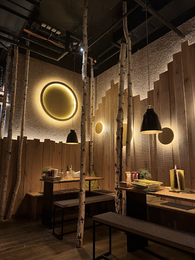 Read moreWir waren von der Einrichtung beeindruckt. Die Atmosphäre war angenehm und die Dekoration mit den Bäumen sah toll aus. Allerdings waren die Bänke leider sehr unbequem, was den Gesamteindruck etwas trübte.