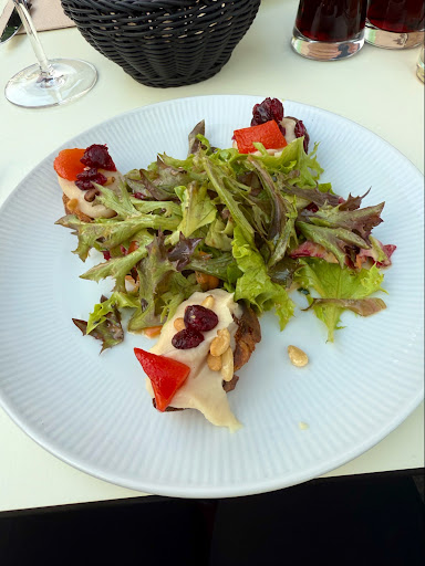 Upon arrival, we were greeted cordially and seated at one of the charming outdoor tables. Our culinary journey began with a rosé Cava, crisp and refreshing. The starters set a high bar: – “Boquerones al Mimosa” – marinated anchovy fillets prepared with subtlety and finesse, delivering a delicate balance of acidity and umami. – Marinated Duroc Pork Skewers with Chimichurri – remarkably tender with a fragrant, herbaceous dip that complemented the richness of the pork beautifully.