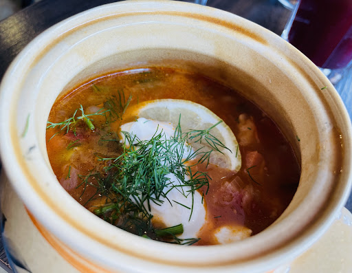 Read moreThis isn’t really a restaurant but a rather tiny cafe. They could use a small air conditioner, since it can get rather hot and stuffy in the summer and the fan doesn’t help much. The owner is a very nice German man who speaks Russian fluently. I’ve only tried their Solianka soup, Beliashi, cabbage and compote. Everything seemed rather solid, although the Beliashi could have more meat filling. They also have a good selection of vodka and other alcoholic beverages. Nice place for a quick lunch....