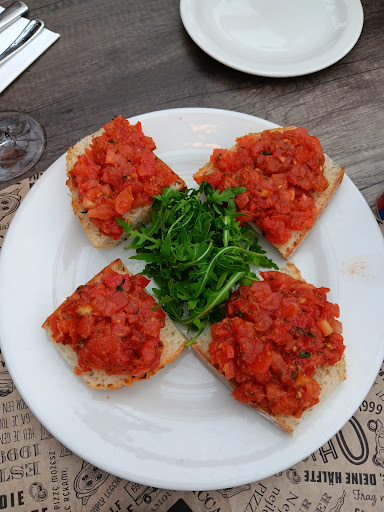 Es sollte ein schöner Abend werden, da wir gedacht haben, zu unserem heutigen Hochzeitstag mal schön italiänisch verwöhnt zu werden. Aber weit gefehlt. Wir haben extra online für heute reserviert. 19:00 Uhr war geplant. Der Zeitslot war dann 19:00 bis 20:30 Uhr. Als wir dann kurz vor 19:00 Uhr ankamen, stand man erst einmal am Eingang und wartete eine Zeit lang bis jemand kam. Dann sollte wir an der Bar uns einmal zwischenparken bis ein Tisch frei wurde. Keine Frage, ob wir schon etwas trinken wollen. Dann wurde uns ein Tisch im Wintergarten zugewiesen. Der Tisch rund 80 cm im Durchmesser und wackelig, da der Boden im Wintergarten mit unebenen Pflaster ausgelegt war. Es dauerte dann eine ganze Weile, bis jemand die Bestellung aufnahm. Dann erst einmal wieder lange Zeit nichts. Nach ca. 15 Min . kamen dann die Getränke. Wir bestellten als Vorspeise Bruschetta (was sich als Tomatenpampe erwies), als Hauptspeise ein Nudelgericht und eine Pizza, sowie einen kleinen Beilagensalat (welcher lieblos einfach in eine kleine Schüssel geklatsch wurde). Lange Zeit später, sprach ich dann den Kellner an, dass wir das Bruschetta bitte doch als Vorspeise haben wollten. Als Antwort kam dann, ja hole ich gleich. Insgesamt haben wir dann 50 Minuten auf unser Essen gewartet. Auf Nachfrage, ob wir vielleicht zumindest den kleinen Beilagensalat schon einmal bekommen könnten, hieß es, "der kommt zum Essen dazu". Das Konzept mit der Pizza ist nicht überzeugend. Man bekommt eine Papierunterlage (was mich wunderte), aber sich dann von selbst erklärte. Die Pizza ist so gestreckt und dünn, dass sie über den Teller ragt. Dadurch ist der Teig hart (und ich meine nicht "lecker knusperig") und dadurch dass die Flüssigkeit den Boden sehr aufweicht, labbert der Rand dann auf dem Tisch herum. Die Peperonis komplett mit Stiehl lieblos drauf geschmissen. Alles sehr wässerig, als hätte man TK-Produkt verarbeitet. Geschmack fehlanzeige. Vom extra bestellten Knoblauch keine Spur. Auf Nachfrage, bekam ich die Aussage, es sei Knoblauchöl (was ich nicht geschmeckt habe).