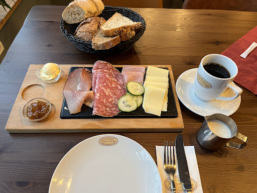 Read moreWir hatten dort Frühstück. Das Brot war unglaublich gut und der Belag reichhaltig, dazu ein fairer Preis. Punkt Abzug: Leider war der Tisch schmutzig (s. Bild), die Bedienung hat auch keine Anstalten gemacht den Tisch zu wischen oder die schmutzige Tischauflage zu wechseln. Punkt Abzug Leider war die bestellte Milch schmutzig, das sei nur Kaffeepulver meinte die Bedienung. Punkt Abzug: Es waren Dienstleister da, die Cafétüre wurde immer aufgesperrt so dass es kalt wurde. Ich musste sie immer wieder schließen. Dann wurde sie wieder aufgesperrt. Keine Unterstützung vom Service. Punkt Abzug: Es waren Lieferanten hinter der Theke die sich durchgehend sehr laut mit allen Mitarbeitern unterhalten haben, also richtig laut und eine gute Stunde lang. Das gab das Flair einer Baustelle. In Summe war das Essen gut aber der Service respektlos...