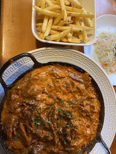 Read moreWaren heute das erste mal dort , sehr herzlicher Empfang vom Chef persönlich. Es war sehr gut besucht so das man schon das Gefühl hatte man sitze den Nachbarn aufm Schoss .Zum Beginn gab es je 1 Ouzo . Essen kam sehr schnell (fast schon zu schnell) frische Speisen, heiß, gute Portion jedoch etwas teuer unserer Meinung nach. Uns fehlte auf dem Tisch Sachen wie Salz , Pfepper , Öl ? Bekamen wir aber auf Nachfrage. Mein eines Stück Fleisch haben ich mir einpacken lassen, zu meiner Verwunderung wurde es vor dem Einpacken nochmal erwärmt und dann in alufolie gepackt und mir so auf dem Tisch gelegt . Kleine Schale oder auch ne Tüte dazu wäre nett gewesen , aber auch diese bekam ich auf Nachfrage. Gutes Trinkgeld haben wir da gelassen, jedoch waren wir sehr enttäuscht das es zum Schluss keinen Ouzo mehr gab ... Das gehört einfach dazu und bei nem guten Trinkgeld kann man das eigentlich erwarten. Zuhause angekommen 5 min Fuß weg war die ganze Tüte voller Wasser vom Fleisch ... Zum Glück fragte ich nach einer Tüte sonst hätte ich die ganze Tasche voller Saft gehabt . Im großen und ganzen war es ok . Bis auf das mit dem Ouzo und den Fleisch im Alu das sollte...