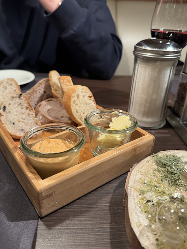 Die Gerichte: Das Beste war der Gruß aus der Küche mit leckerem Walnuss und Olivenbaguette plus Olivenpaste und Butter. Leider haben wir daraus geschlossen, es ginge qualitativ so weiter. Die Falafelfritten waren zwar gut gewürzt, blieben aber mit einem mikroskopisch kleinen Klecks Soße auf dem Teller, ziemlich trocken. Die Portion war recht überschaubar. Immerhin schmeckte dieses Gericht nicht übel. Das Steak war soweit i. O., vom Fisch fehlt die Rückmeldung. Was man leider vom Schnitzel nicht behaupten kann, dass meinen Lebenspartner an seine Uni-Mensa-Zeit erinnert hat, wo Schnitzel so lange auf Warmhalteplatten parkten, bis sie staubtrocken und gummiartig waren. Was meine Wahl angeht, dann hätte ich wohl kaum mehr daneben liegen können. Der Caesar--Salat entpuppte sich als eine längliche Platte mit Römersalatblättern, auf denen einige völlig geschmacksneutrale Kirschtomaten, neben sparsam verteilten Parmesanschnitzen, in einer Käsesahnesoße badeten. Keine Croutons, kein Mais, Gurke oder anderes Gemüse, wie sonst bei Caesar-Salat üblich. Die auf der Karte stehenden Speckstreifen (die ich als Vegetarierin natürlich nicht mitgegessen hätte) wurden weggelassen, aber durch nichts anderes ersetzt. In einem anderen Lokal, hat mir dafür der Koch gebratene Austernpilze dazu serviert, die ein sehr schmackhafter Ersatz waren. Die Menge der Zutaten auf meinem Teller/Platte waren für 9,50€ eher kläglich und ich habe mich danach zu Hause noch satt essen müssen um nicht hungrig ins Bett zu gehen. Zu guter Letzt möchte ich noch fragen, ob es nötig ist, mehrere über 80 jährige, teils gehbehinderte Personen zu zwingen, bei miserablen Lichtverhältnissen und im Stehen, im Vorflur des Restaurants, die Corona-Datenblätter mit Bleistiften auszufüllen, statt dieses sitzend am Tisch...