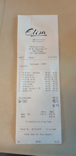 Thank you for your feedback, the type of kitchen does not matter, but the taste of the food is important, to start, as starter we ordered bruschetta, however the basis ingredients was missing, I did not taste any garlic at all, the bread was not toasted at all… we also had “baba ganoush” but it was not even close to “baba ganoush” (see my other review, I had real baba ganoush few weeks ago in Paris, in one of the Lebanese restaurant), the same applies to tapenade , it tasted rather very bitter. As for the main course, I ordered Elise teller, the stake was not properly made, and it was rather very dry and hard to eat, the chicken shish was way too salty. Shrimps was not made as it should no spicy no garlic…. As for the salad, it tasted ok but my wife could not eat is as it contained too much sand, the pizza for our kid was too oleaginous. What I also noticed, your kitchen is more like a World Kitchen, I mean you have, Turkish, Italian, Mexican, Lebanese and god knows how many other type of Kitchen you provide. To me this is not a good sign, a proper restaurant have only one type of kitchen, e.g. Restaurant Tendüre Bremen has only Tendüre-turkish food, Kabul Restaurant Bremen has only Afghani food or EL MARIACHI – Bremen has only Mexican food…..