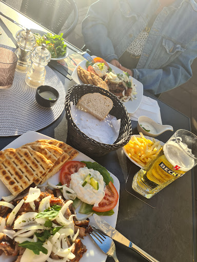 Das Essen war hervorragend. Wir hatten Gyros und Souvlaki, die beide perfekt zubereitet und sehr lecker waren. Das Fleisch war saftig und zart, und die Gewürze haben wunderbar harmoniert. Auch die Beilagen, insbesondere der frische Salat und die knusprigen Pommes, waren köstlich. Der Melitzanosalata nach dem Rezept der Mama war ein echter Kracher – so aromatisch und frisch, dass man einfach nicht genug davon bekommen konnte.