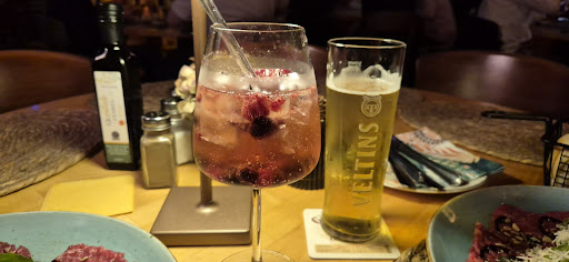 Wir hatten einen kleinen Sekt Empfang der ebenfalls eher lieblos gestaltet wurde, die Bedienung allerdings war der Ober Knüller, unfreundlich mit Bundeswehr karakter beschreibt es ganz gut. Getränke Bestellung wurde aufgenommen, von der gleichen Kellnerin bearbeitet (ca. 4min) und am Tisch laut aufgerufen (KLEINE COLA BITTE?, KLEINES ALSTER BITTE?, WASSER BITTE?). Als wenn das nicht reichen würde hat meine Frau ein ganzes Glas Apfelschorle über den Rücken gegossen bekommen. Eine Entschuldigung hierfür gab es nicht, nur die Aussage: " war ja nur n halbes Glas". Hätten wir nicht Taschentücher dabei gehabt wäre sie nass geblieben denn nichtmal eine Serviette wurde uns gebracht.