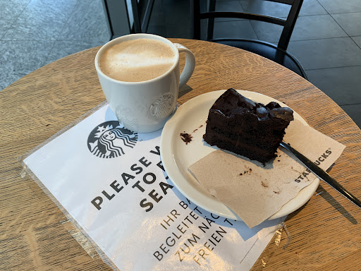 Read moreToller Starbucks an exponierter Position. Wer einfach nur das Grausen bekommt, wenn die anderen in den Primark wollen: Calm down, lass' sie da hingehen und hockt Euch so lange hier in den Starbucks. Der ist direkt vor dem Eingang und ist rundrum offen, daher nicht so miefig wie die überfüllten anderen – und die hier bemängelten hohen Preise sind auch nicht höher als in den anderen Starbucks. Feldstärke für mobiles Internet ist (im Gegensatz zum Inneren einiger Läden drum herum) auch da, also: Hinsetzen, Handy raus, Kaffee ordern...