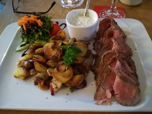 We decided for our dinner to make a reservation for 5 persons at the restaurant Kvartier! Inside the restaurant, it is nicely decorated with some textures and pictures. The friendly personell showed us our table and we became the menu cards. After a short time the drinks ordered and served. A good variety on the menu card makes it easy to choose. One of the dishes is the rumpfsteak with baked potatoes union rings and paprika sauce. As extra a small portion of fresh and crispy salads, it tastes delicious. To make the dinner complete a desert should be to fill the small place which is left. We took the apple strudel with vanilla ice cream. Very nice and again delicious. So overall it was great and for sure we will come back. To be...