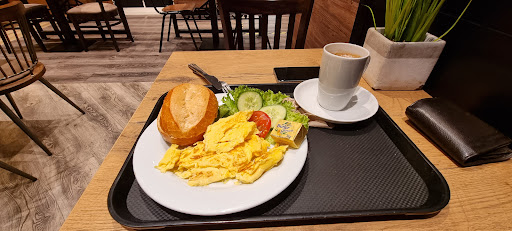 Read moreSchnarchzapfen als Mitarbeiter. Ich bestelle einen großen Kaffee, übersetzt in Englisch "Large". Die Bedienung zeigt mir eine Kaffeegröße mit dem Worten "Der Kaffee ist dann so groß, ist das ok?" Ich stimmte zu und bekam einen Kaffee XL. Ich finde das verarsche am Kunden, zudem die Tasse dann auch nur 2/3 voll war. Hätte man den Inhalt in eine "L"-Tasse geschüttet wäre sie sicher angemessen voll gewesen. Den Kaffee durfte ich mir dann auch noch selber abholen, super Service. Das Café war fast leer, also kein Stress oder ähnliches. Es ist WLAN vorhanden, auf Anfrage weiß man aber den Code nicht. Die Bedienung war angemessen freundlich, aber kann noch einiges lernen für guten Service. Ich glaub sie wurde einfach nur schlecht eingelernt. Einziger Pluspunkt:...
