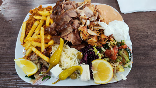 Besucht, da es online hieß, einer der besten Döner in Bremen. Ich habe einen Dönerteller für 12€ und eine große Portion Pommes + Getränke bestellt. Vorweg, ich orderte ohne Cocktailsauce und Pommes, dazu ein bisschen Bulgur Salat, um ihn zu probieren. Gericht war toll angerichtet, sogar mit Käse und Oliven bestückt. Allerdings mit einem großen Klecks Cocktailsauche. Der Bulgur war geschmacklich boden los, kurz gekocht, aber nicht gewürzt. Das Tzatziki war super sauer, aber cremig. Von der Fleischqualität war alles solide, nur das Rind/Lamm/Kalb war trocken. Hätte mir vorher auffallen müssen, dass nur der Hähnchen Döner überhaupt angeschnitten war. Das Hähnchenfleisch war aber super und saftig. Auch die dazugehörigen Salate waren gut. Insgesamt habe ich 23,5€ bezahlt, was Döner essen langsam aber sicher zum Luxusgut macht. Weil der Service, also das Hinstellen der Gerichte auf den Abholtresen, gut war und es für meine Kids noch Gläser und Lollis gab, vergebe ich faire 3 Sterne. Vermutlich wäre der einfache Döner Pita die bessere Wahl gewesen.