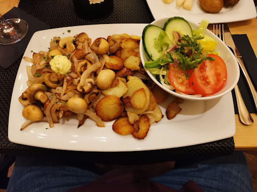 Nun habe ich mal die Zwiebelbratkartoffeln probiert. Bei Bratkartoffeln bin ich sehr eigen, und nehme meine eigenen, die ich meistens gut bis sehr gut hinbekomme, als Referenz. Da ich meine fast immer aus Salzkartoffeln von Vortrag mache, haben es Restaurants hier geschmacklich meistens schwer, da frische Kartoffeln, nicht selten bereits geschälte aus dem Beutel verwendet werden.