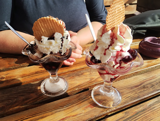 Die Eisportionen waren ok. Beide Eisbecher waren sehr lecker und auch schön angerichtet 😋 Dafür dass es keine gewöhnliche Eisiele ist, war der Preis ok.
