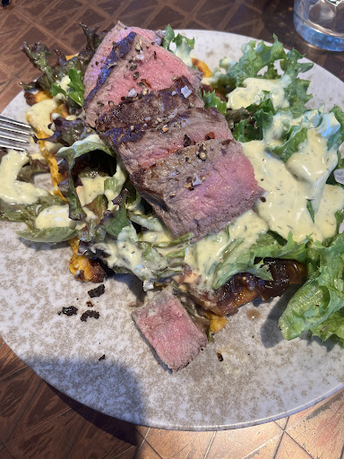 Read moreRestaurant Interior ist recht elegant & weckt falsche Erwartungen einer gehobenen Gastronomie. Tatsächlich ist das Speisenangebot jedoch auf die Besucher des Trampolinparks ausgerichtet: Familie mit Kindern, Jugendliche, allgemein junges Publikum. Ergibt Sinn & wird auch positiv angenommen. Zu Imbissklassikern wie Currywurst, Burger & Schnitzel sowie Altbekanntem & -bewährtem wie Bruschetta, Tomatensuppe, Salat (-Variationen) & Pasta gesellen sich noch Porridge, Waffeln & Bowls in herzhafter & süßer Form. Bis 12 Uhr werden "Frühstückspakete" als Etageren geboten. Bekanntes findet man ebenfalls bei den Desserts: Cheesecake, Tartufo, Brownie, Vanille-Eis & die - bereits erwähnten - Waffeln.