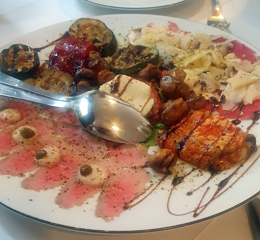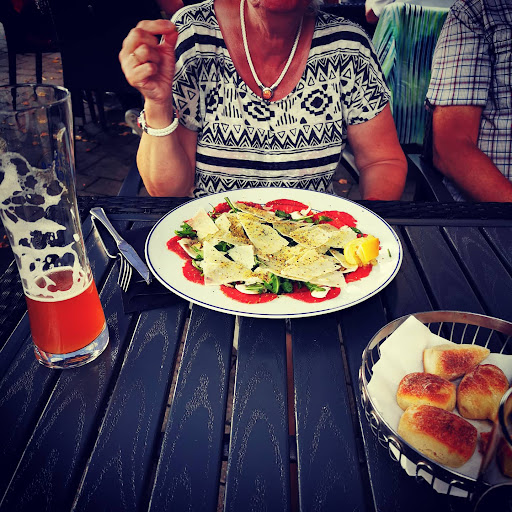 Wir bestellten ein paar Getränke, das Servieren hat ein klein wenig länger gedauert da ja recht viel los war. Aber alles im Rahmen. 😊 Zu Essen bestellten wir dann eine Tomatencremesuppe (fruchtig, heiß und Paninis dabei) und eine sehr gute Salami Pizza, Rindercapaccio mit Champions, Salat und Parmesan. War auch sehr lecker und reichte meiner Mutter sogar als Hauptspeise. Ihr Partner hatte Scalopini in Fenchelsauce mit Pommes und Beilagensalat. Den Beilagensalat meiner Mutter aß ich, der war sauber und frisch, das selbstgemachte Dressing sehr lecker (aber geheim).