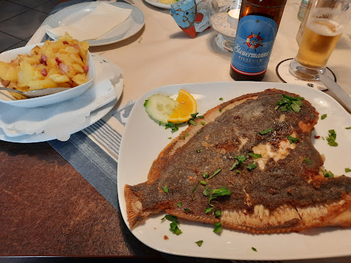 Read moreKaum aus dem Zoo, bekommt meine Frau Hunger. Es ist Mittag 12:15 Uhr. Gestern ging mein Vorschlag so richtig......... Heute bin ich besser vorbereitet, die Rezensionen versprachen nur sehr gutes. Garnicht weit dieses Restaurant, das ist wichtig, 2-mal lang hinschlagen, schon waren wir da. Mein erster Eindruck, kein Touristen Styl, das Essen soll überzeugen. Kurz gefragt welchen Tisch wir besetzten dürfen. Nachdem wir saßen, schweifte mein Blick durchs Lokal und bemerkte, Frauen ,keine Männer die das Ruder in der Hand hatten. Freundlichkeit bis unters Dach, wir bestellten unsere Getränke. Meine Frau bestellte sich Rotbarsch-Madras für mich die Kutterscholle, statt Kartoffelsalat wünschte ich mir Bratkartoffeln. Kein Problem. Das Lokal füllte sich während unserer Essen zubereitet wurde. Das Essen kam. Die Überraschung, toll angerichtet. Die Scholle riesig, siehe auch die Fotos, mache sonst keine Bilder, dieses mal ja , Bilder sagen mehr. Normalerweise stehen bei mir die Bratkartoffeln im Vordergrund. Waren auch gut. Aber diese Scholle, toll gebraten, nicht trocken , das Fleisch konnte man mit der Garbel abziehen ohne das nur eine Grete mit kam. Schönes weißes Fleisch noch, glasig. Die Scholle kann nur wenige Stunden aus ihrem Element sein. Meine Frau sah man es an das es ein Volltreffer war. Die 🍍, der 🍑 im dünnen Teig Mantel. Auf den Pfirsich Preiselbeeren. Raffiniert. Bevor ich weiter Schwärme, geht unser Dank an dem topp geschulten Personal mit viel Feingefühl. Wir werden uns oft an dieses...