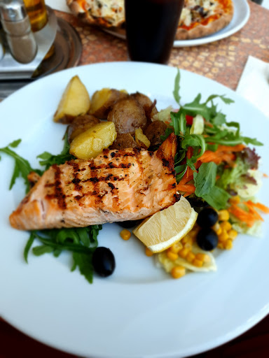Read moreAuf der Suche nach einer schönen Location zum Mittagessen mit 4 Personen sind wir hier gelandet. Die Location war sehr ansprechend. Aber nach dem wir uns an einem Platz gesessen haben kam dann leider gleich die negativen Sachen ans Tageslicht. Wir bestellten uns 2 Latte Macchiato, dabei fragte ich ob sie dies auch mit Geschmack hätten. Dies wurde gleich von der sehr "netten und ambitionierten" Kellnerin bösartig verneint. Okay dachte ich mir, es geht ja auch ohne. Nachdem wir aber die Speisekarten durch geschaut hatten, haben wir entdeckt, dass es den Cappuccino mit Geschmack gibt. Dann haben wir uns gefragt, warum dies auch nicht beim Latte Macchiato geht. Dann bestellten wir uns Essen. Das Essen kam auch sehr schnell und zwar innerhalb von 5 Minuten. Dementsprechend war es auch. Wir haben uns einmal Rigatoni mit Tomatensauce und Broccoli (es war leider kein Broccoli drin, sondern nur die Strunken), Pizza Hawaii (diese war nicht geschnitten und war in keinster Weise gewürzt und man musste sich Pfeffer und Salz, welches gar nicht vorhanden war, selbst besorgen), eine Portion Pommes (die waren mehr als durch, dass heißt sie waren sehr fest, also nichts für Gebissträger) und einmal 3 Scheiben Fleisch mit Pasta und Champignons. Das war das schlechteste Essen, denn dieses war erstens sehr kalt und dann für das Geld viel zu wenig. Und der Oberhammer war, dass man sich die Pasta dazu nicht aussuchen konnte. Des Weiteren durfte das gesamte Personal oder konnte nicht alles. Es durfte nur eine Kellnerin die Bestellung aufnehmen, 2 durften das Essen bringen und eine andere durfte das Geschirr wieder abräumen. Also alles im Allem ist das Restaurant welches man definitiv nicht weiterempfehlen kann. Die sind sich wahrscheinlich sehr sicher, dass dies immer so laufen kann, da dies gleich an dem Hafen liegt. Wir gehen lieber aber das nächste Mal in eine Kneipe, da wird man besser bedient und das Essen ist wahrlich um 5...