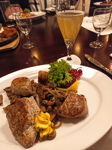 Solid Northern German fare, mainly fish as well as some regional specialities, hosted aboard an old steam boat. A good place for a slightly formal or posh occasion! The fish is very fresh and the portions generous, at reasonable prices. My personal favorite is the “Plaice Finkenwerder Style“ - a very tender fish served whole with German fries, Krabben (tiny North Sea shrimp) and a salad. I liked the salad bar a lot: a good selection of different and seasonable vegetables, all very fresh. The restaurant also has a good selection of different types of beer as well as red and white wines. The restaurant is next to the Schaufenster Fischereihafen area which features several shops and restaurants and is a nice place for a...