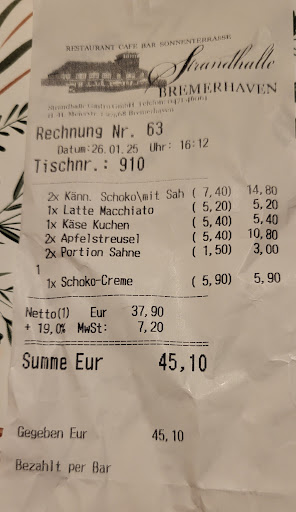 Das allgemeine Erscheinungsbild des Restaurant "STRANDHALLE BREMERHAVEN"...