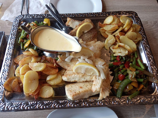 Also..... mega lecker. Der Delphin war ne Wucht und das schnitzel schmeckte schön nach Rotbarsch.....so jetzt mal im ernst. Wir hatte den Rotbarsch mit Bratkartoffeln und und die Scholle mit Krabben und Bratkartoffeln. Absolut zu empfehlen sehr lecker und mehr als sättigend. Ich weiß wie Fisch schmecken muss. Komme von der Küste mit frisch Fisch. Der Preis absolut angemessen hätte auch mehr bezahlt aber dann gibt es halt Trinkgeld. Die Bedienung super freundlich obwohl der Laden voll war man wurde mehrmals ohne Aufforderung beachtet und es wurde gefragt ob alles gut sei. Wir kommen gern wieder. 13.01.24 So zum 2.mal hier, wieder alles super. war klar.... Meine lieblings Bedienung war auch wieder da super freundlich wie nicht anders erwartet. Meine Freundin wollte erst woanders hin aber ich habe sie mit den magischen Worten.....ich zahle.....überzeugt. Meine Freundin sagte aber das wir das nächste mal draußen sitzen wegen dem Geruch......nein nicht der aus der Küche vom Fisch sondern wegen meinem. Also Memo an mich das nächste mal duschen, deo frischen schlüppi ......in diesem Sinne guten Appetit und guten Appetit. P.s. Ich denke der spruch immer einen Fingerbreit Gräte im Fisch kommt nicht so gut wie, eine Handbreit Wasser unterm Kiel.